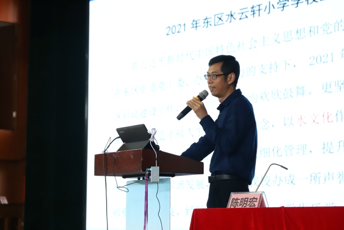 在老师们了解了中小学教师信息技术应用提升工程2.0工程后,林小舟校长为老师们解读水云轩小学的提升工程2.0的一划两案(2.0学校发展规划,研修方案和考核方案)。这些计划方案,切实地根据学校的软硬件实际和人员架构度身订造,采取了骨干先行,课题推动,分科实施,校本研修,整校推进,辐射引领,智慧提升分阶段进行。务求在2021年上半年整校推进,下半年建立品牌特色。这些规划方案把老师们本人专业化发展与学校的信息化发展联动起来,提高教师信息化应用能力,让学校信息化应用推动教育、教学的质量再提升,探索新型教育教学方式的变革和学生学习方法的转变。
