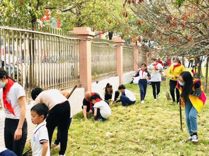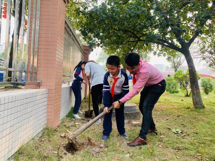 活动伊始,学校少工委总辅导员梁韵仪老师作了动员讲话。梁老师在讲解了植树节的深远意义和注意事项后,宣布植树活动开始。顿时,校园内处处洋溢着忙碌而快乐的气息。队员们在家长和辅导员的指导下,纷纷扛起锄头、拿起铲子、提起水桶,一起挖坑、填土、浇水,为春天种植希望。大家热情高涨,干劲十足!在种植的过程中,家长和辅导员适时地传授一些劳动的技能和植物生长的知识,让孩子们学到了不少课堂上没有学到的知识,真是受益匪浅!不到一个小时,小花苗都栽好了。每个人都是满头大汗的,但看着小花苗屹立在阳光下,队员们别提有多开心了。