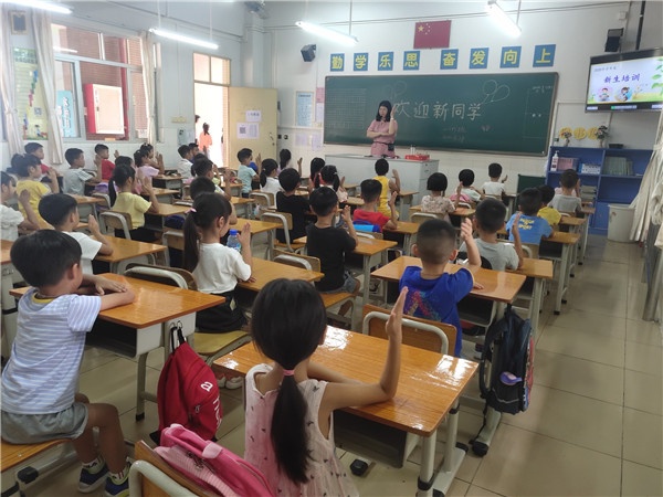 29日,为期一天的新生培训活动正式开始了。首先各班班主任在教室对学生的课堂常规、学习习惯、行为习惯进行培训。体育老师协助班主任们通过文明礼仪课堂、队列训练等形式,让孩子们在寓教于乐的活动中,了解新校园、认识新伙伴、学会新本领,为即将开始的小学生活做好充分准备。
