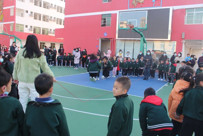 大课间活动中,孩子们排着整齐的队伍安静有序地走出教室,进入操场,伴着音乐的节奏整齐有力地完成了队列队形、国学操、跑步操和集体跳绳的展示。家长们手中的手机不时闪动,更有家长亲自身融入到孩子们的活动中,和孩子们共同体验体育锻炼的健康和乐趣。
