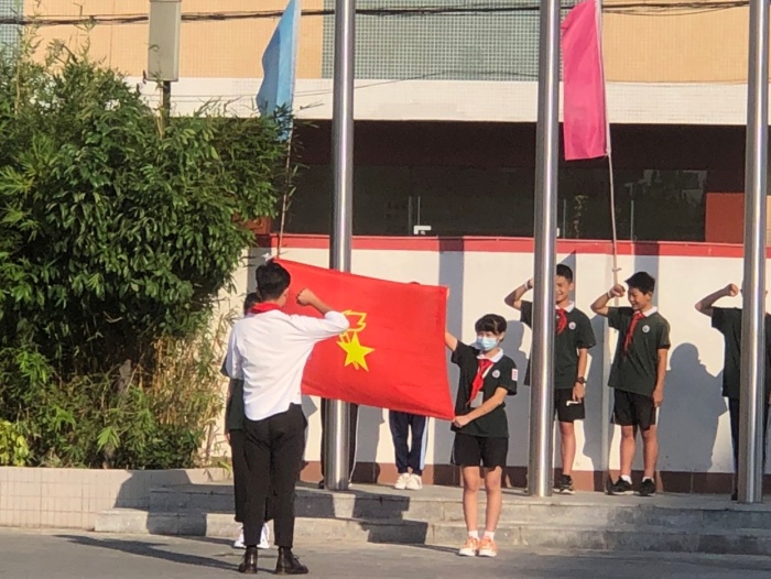 10月13日清晨,同学们一进入校园就能看到学校的大屏幕上播放着第八次全国少代会的宣传片,以此作为华盛学校庆祝中国少年先锋建队71周年活动的预告。