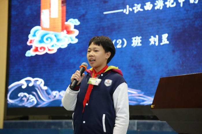 “书犹药也,善读可以医愚。”拥有良好的阅读习惯必然是成功的一半,此次活动共有11名学生发表自己在阅读过程中的感悟和思考,谁能想到用数轴的形式来呈现《西游记》中的人物性格?谁能想到可以自己创作一回《西游记》的故事?在这里,他们都做到了,自信大方的演讲、独到的阅读体会、丰富的阅读量、精美的PPT演示无不展示了东中学子优秀的能力和水平,展示了当代青少年“敢想、敢做、敢说”的创造精神和自觉担当的责任意识,他们精彩的表现赢得现场学生一阵又一阵的掌声。