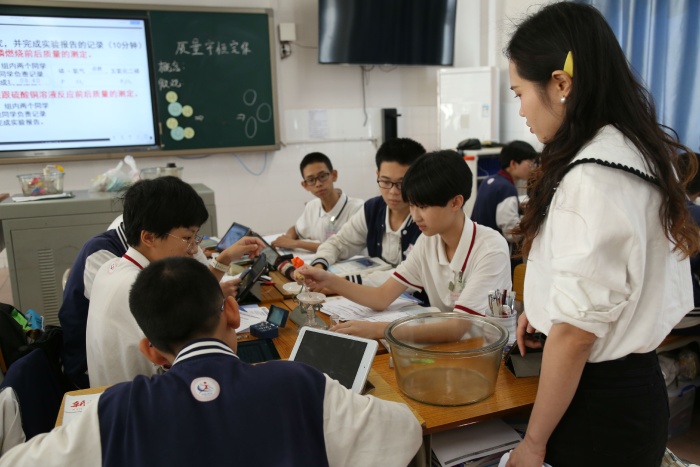赛后评委陆朝宁校长对参赛老师的课做了精准精彩的点评。他指出:韦凤立老师的课充分体现了学生的主体性,先学后教理念;梁凤仙老师的课注重引导学生如何进行实验探究;董建清老师的课主线清晰,以波义耳、拉瓦锡两位科学家的研究对比引入,引导学生对待实验态度严谨,否则重大的科学发现将与你擦肩而过。而方琦真老师的课语言富有感染力,课堂上能熟练运用希沃白板5,将学生分组探究实验的投屏分享,引导学生积极思考。