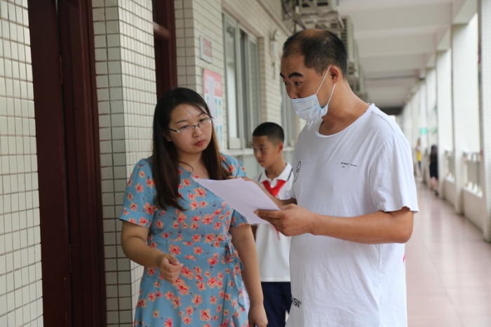 新学校是所怎样的学校,孩子们该如何适应顺利完成在学校的生活学习,学校办学情况如何,老师们情况如何?带着这样的疑惑,家长们被请到孩子们各自的教室入座。宽敞明亮的教室,整洁的书桌,讲台大大的一体机,加上室内空调袭袭的凉风吹来,教室较为舒适的环境一下子接近了家长们与学校的距离。吴校长以此为切入点,向家长们重点介绍了学校的软硬件情况。学校优美的环境、光荣的历史、较为先进舒适的教学设施设备、良好的师资力量以及良好的教学成绩,都给家长们留下了深刻印象。