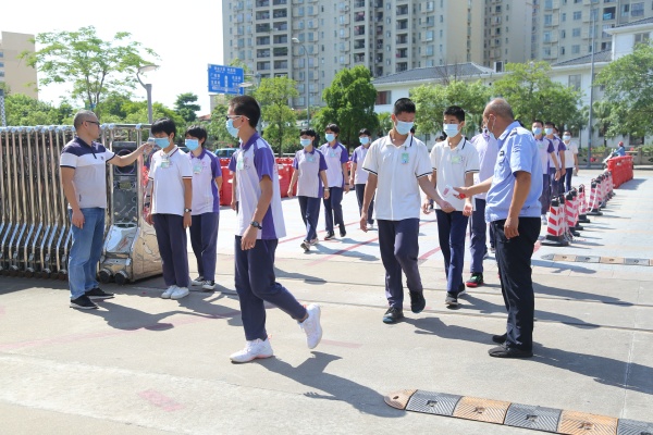 本次模拟演练主要分为四大场景:“学生入校温度测试及监控”、“学生出现发热症状的应急处置”、“不同路线的有序考试及有序离场”、“考场消毒和通风”等依次进行。参演的老师与学生在演练中各司其位、各尽其职,按照规范程序模拟了初三考生英语听说中考的各种突发状况和应急处置方法,充分检测了学校英语听说考试应急预案的科学性、有效性和可行性。