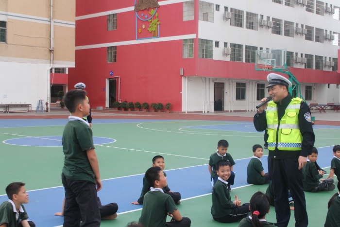 随后,吴警官用幽默风趣的语言与学生互动,引导学生自觉学习做到严格遵守交通法规。他向同学们提出了一些交通安全知识问题,并向答对的同学发放了小礼品,活动的气氛进入高潮。