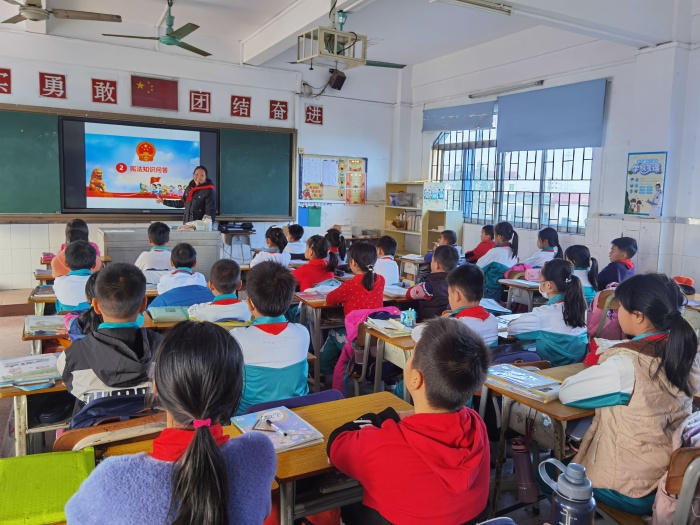 当天下午,各班召开“12·4国家宪法日”主题班队课以及知识竞赛,班主任们通过列举大量的案例,让学生懂得违法犯罪时的冲动和无知导致的严重后果,并以趣味十足的知识竞赛丰富了“学宪法”的教育形式。此前,学校还组织了全体学生开展“宪法小卫士”活动,线上线下两结合。