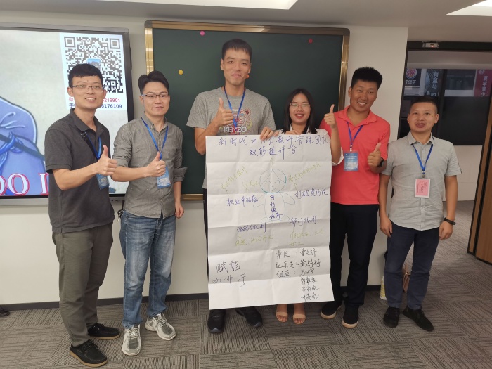 开班典礼结束后,由廖文博士带领大家走进“世界咖啡”这一分享智慧的工作坊,各小组发挥所长,聚焦小组目标,充分调动思维力、想象力,善用网络、手机等资源,并集百家之长,成立了颇具特色的“励剑十年”、“未来可期”、“回味”、“幸运”、“赋能”咖啡厅,纷纷为小组设计出了一个个更为个性化的网络研修方案。