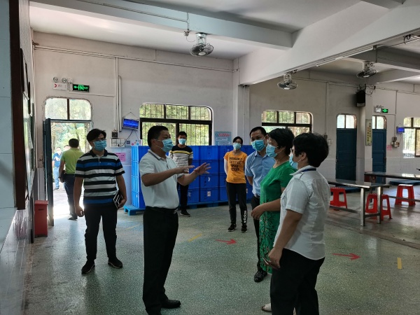 在学校教室和各种场所,检查组认真检查了卫生情况,测温设备设施和各种应急对策。校长郑新介绍,学校在严格落实相关的防疫防控工作制度,对师生严格测温,每天对教室、办公室、饭堂等场所进行消毒(即一日一清洁、消毒、一周一大扫除),确保学校全方位消毒,做好疫情防控工作。