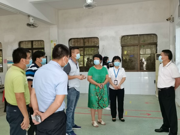 6月19日下午,阜沙镇党委书记曹富全带队,镇党委副书记梁庆明,镇党委委员、副镇长梁向阳等一行到阜沙中学检查防疫工作落实情况。阜沙中学校长郑新,后勤处卢湛德、梁炳华主任等行政参加并做了疫情防疫工作汇报。