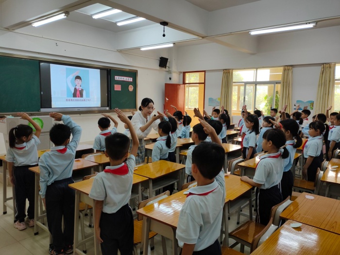 张加丽老师通过视频、图片激发学生参与光盘行动的热情。文年庆老师通过体验活动感受残缺的生命是艰难的,最后由学生总结如何保护生命。叶云霞老师通过讲故事、图片情境分析等环节让学生感悟诚信和践行诚信。 陈敏静老师通过课堂活动,让学生理解国庆节的由来及含义,明白热爱国家需要从实际行动做起,从小事做起。梁宝铃老师通过情景演练和检验诚信的小游戏以及寻找班级诚信之星的活动深化学生对诚信的认知。何燕珊老师通过班会课学习让同学们学会与人交往技巧:尊重、宽容、微笑、“将心比心”。