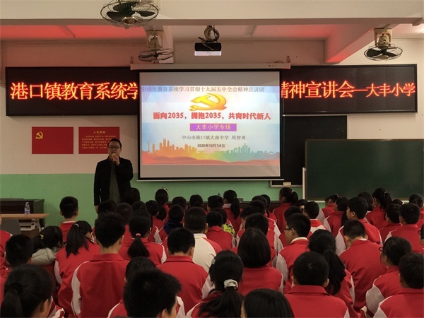 ——港口镇大丰小学举行十九届五中全会宣讲会发布时间:2020-12-16 16:03 信息来源:本网站 浏览次数:0