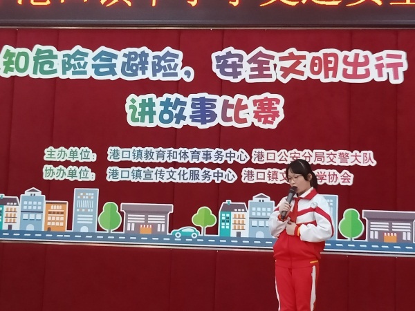 为了激发学生的交通安全意识,调动他们参与交通安全宣传的积极性和能动性,讲好遵守交通规则故事,港口镇在12月9日举办了“知危险会避险,安全文明出行”讲故事比赛。