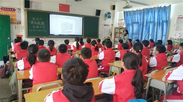 经过前期“学宪法讲宪法”网上学习,学生对宪法日有了一定的了解,在国家宪法日到来之际,11月30日三(2)班的学生代表陈海锐通过国旗下讲话向全体师生发出倡议,倡导全校师生增强法律意识,自觉做到知法、懂法、守法、护法。此外,各个班级还挑选了两名优秀的宪法小卫士,为各班普及宪法知识。学校在一楼大堂也开设了以“宪法在我心中”为主题的手抄报展示栏目,营造了浓厚的校园法治宣传氛围。