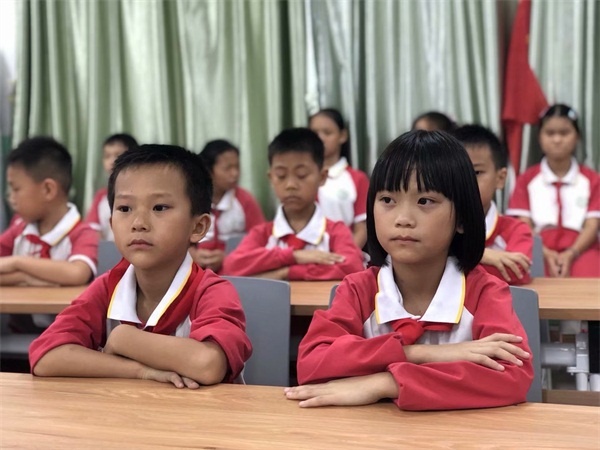 早在入队仪式前,各班中队辅导员利用队课展开入队的系列教育,学生们不仅了解了中国少年先锋队的队名、创立者、领导者、队旗的含义等,还学会了正确佩戴红领巾、敬队礼、呼号和唱队歌等,光荣感和组织归属感油然而生。