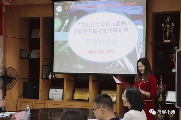 为了让课题研究更科学、更规范,2021年3月16日上午,港口镇民主小学召开2020年镇级立项教育科研课题“中山乡土文化元素融入学校美育活动的实践研究”开题报告会。参会的领导、专家有中山市教育教学研究室林晓洁老师、广东省美育专家、中山市名教师刘坚老师、刘坚名师工作室助理龚宝香老师、港口镇教育和体育事务中心苏彩南老师,以及民主小学林宗技校长、李菲菲主任和课题组全体成员。会议在学校的荣誉室举行,由詹婉莹老师主持。
