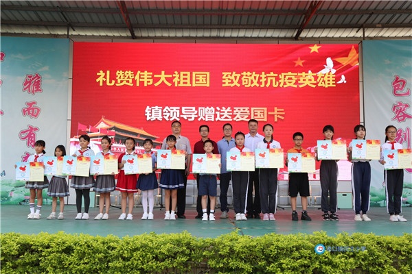 升旗仪式结束后,罗希京委员和冼伟明局长向学生代表赠送了爱国卡,希望同学们心里装着祖国、肩上扛起责任、前行学习英雄。参会嘉宾和民主小学的师生们一起,在拼有中国地图的爱国墙上签名,表达了对祖国的真挚祝福,共同祝福伟大祖国繁荣昌盛!