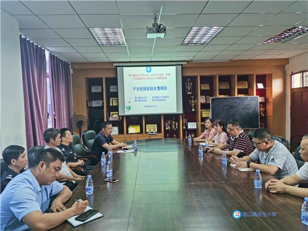 为进一步夯实校园安全工作责任,齐心协力,排除校园及周边存在的安全隐患,为广大师生创造一个良好的工作和学习环境,2020年9月11日上午,港口镇民主小学召开了2020学年第一学期平安校园联席会议,民主社区、东街派出所、民主小学家委会等相关部门的负责人出席。会议由民主小学江振浩副校长主持。