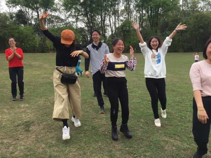 品尝完美食后,即将开始团建的重头戏—拓展游戏。穿衣接力、丢手绢、传花球……大家团结一心,志在参与,无论是否获胜,老师们都心情愉悦,尽展笑颜。有效的交流沟通,有趣的解压放松,这次户外团建活动在老师们的欢声笑语中圆满落幕。