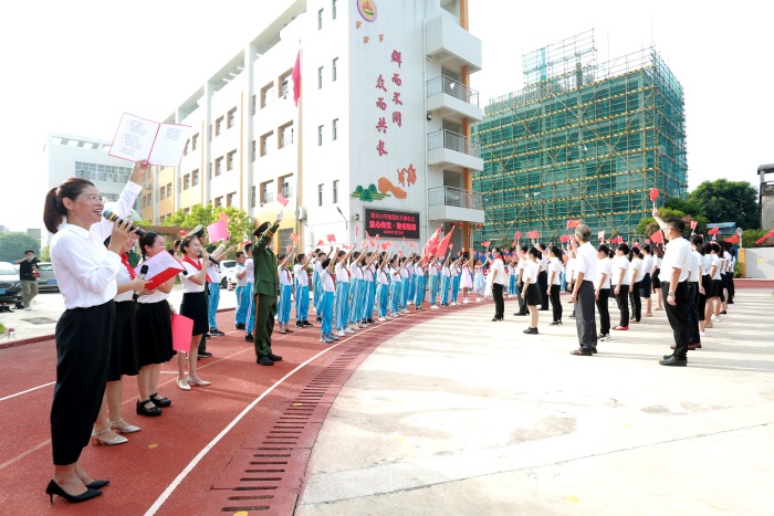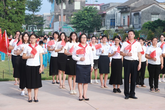 随后,梁铨华校长进行了慷慨激昂的讲话,他高赞了祖国飞速发展的现代化进程,并号召全体师生要热爱中国共产党、热爱祖国,热爱人民,积极进取,希望同学们树立远大志向,努力学习,以优异成绩感恩党、感恩祖国,成长为祖国的栋梁之才。