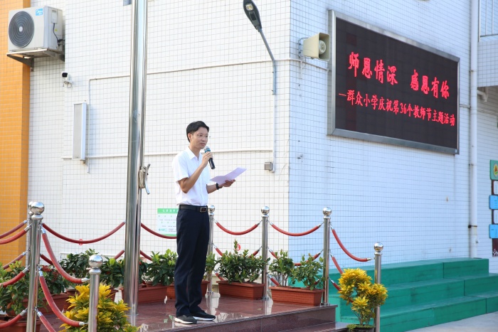 梁铨华校长发表了致辞,他向全体教职工送上了节日的祝福,充分肯定了一直以来为孩子们辛苦付出和无私奉献的老师们,并希望老师们牢记时代赋予教师的重任,为培养德智体美劳全面发展的社会主义建设者和接班人作出新的更大贡献。希望同学们不忘党恩、不忘师恩,好好学习,用实际行动报答党和政府的关爱之恩、老师的教育之恩!