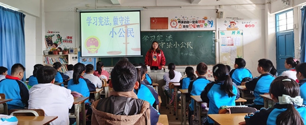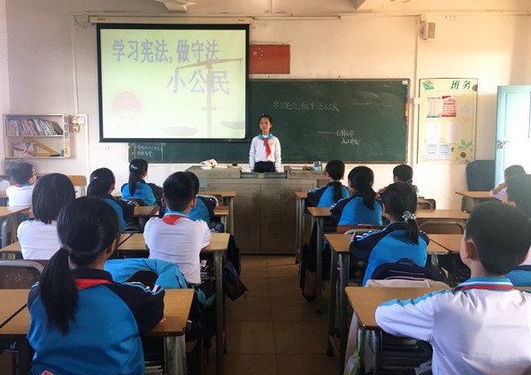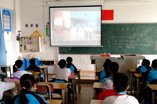 在第七个国家宪法日当天,全校师生通过青少年普法网,观看教育部在北京举办的“宪法晨读”活动,且于9:05-9:15 时段同步开展“宪法晨读”活动。接着,各个班级开展了“学宪法,做守法小公民”主题班会活动。课堂上,班主任从身边的事情说起,进一步加强学生的法治意识。同时,还引导大家反思自身的问题,明确养成良好行为习惯的重要性,做到防患于未然。同学们则踊跃发言,把自己学到的知识牢牢记在脑里,把宪法和国家也深深放在心中。班会结束后,同学们纷纷表示:要自觉遵守法律法规,从小事做起,争做遵纪守法的好少年!
