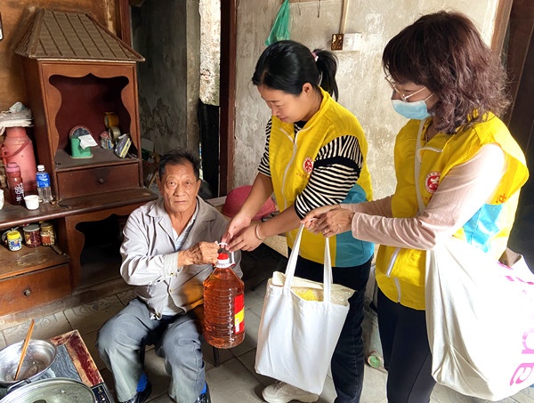 10点整,阳光柔柔地洒在校园的道路上,五对亲子义工以及社区志愿者们在校门口集合。集合完毕后,亲子义工和志愿者们上门对社区的老人进行慰问。一声问候,两句细语,谈话时溢出无处不在的浓浓情意,在老人们的家里,他们与老人们拉拉家常,详细了解他们家庭、生活和健康状况,倾听他们的心声,提醒他们注意身体健康并送上慰问品,同时为老人们送去了节日的问候,让老人们深深感受到了大家尊老敬老的爱心与温暖。老人们脸上都挂着温暖的笑容。