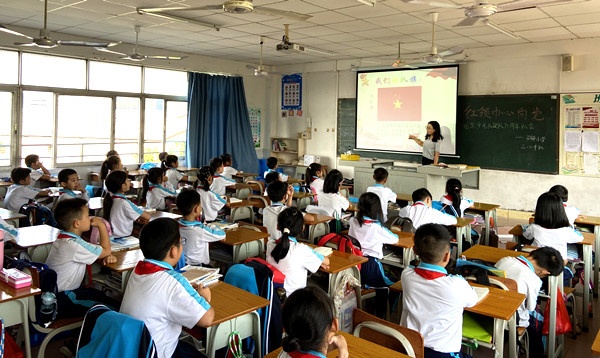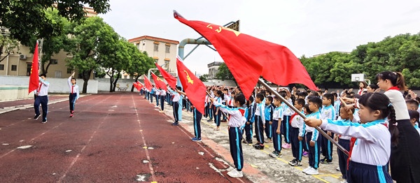 鲜艳的红领巾在胸前飘扬,星星火炬在队旗上闪光,少先队队员代表为大家献上了诗朗诵。队员们的声音在校园里回荡,在金秋的暖阳下升腾成希望。最后,学校少工委主任梁容根校长寄语全体队员,希望大家要树立远大理想信念,积极践行社会主义核心价值观,要有一颗自律自信自立自强的爱国心。同时,也希望大家要从小事做起,从身边事做起,积极做德智体美劳全面发展的社会主义建设者和接班人。