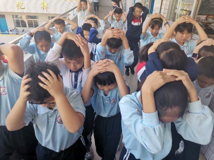 本次防震自救演练共分为三部分,分别是应急避震演练、紧急疏散演练和紧急集合演练。警报声一响,全校师生进入紧急地震逃生的情境中,各老师迅速到疏散岗位,整个疏散过程配合默契,每位老师都将演练作为实战应对,认真指挥,谨慎操作,确保万无一失;各班学生在任课老师的有效组织下,双手抱头,弯腰前行,学生在最短的时间内,安全有序、快速到达安全地点,随后各班随即清点人数向梁伟佳主任汇报。