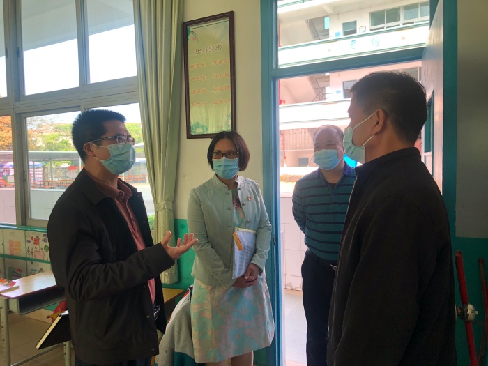 2021年2月22日上午,港口镇党委委员罗希京、港口镇教育部门等一行来到中南小学检查学校开学、疫情防控和校园安全等工作。