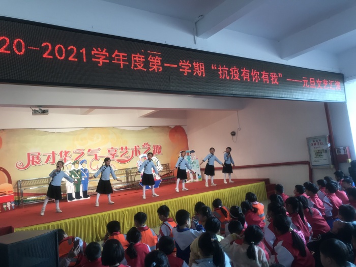 为欢庆2021年元旦,展示师生良好的精神风貌,丰富学生校园生活。2020年12月21日下午,港口镇中南小学开展了以“抗疫有你有我”为主题的元旦文艺汇演。