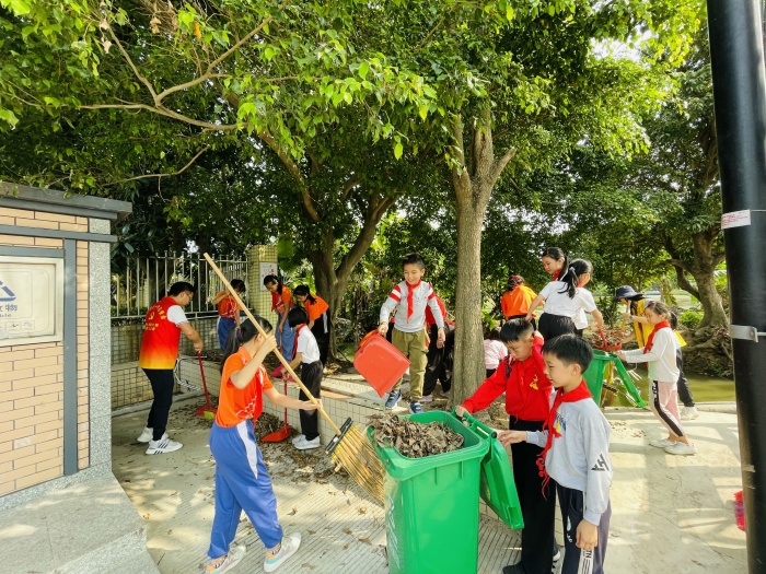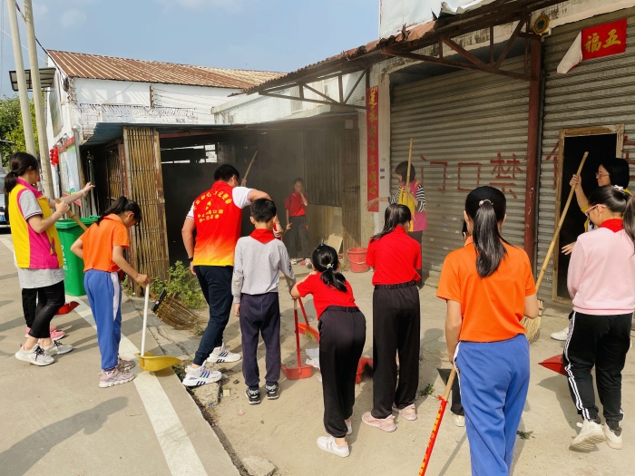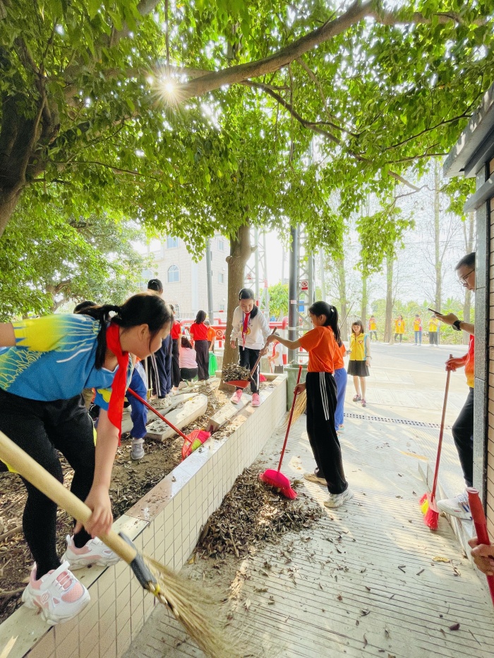 活动伊始,每位参与成员拿着清洁工具来到下南社区集中点,学校梁广平主任进行分组。随后,各组开始对指定范围内进行清理,有的拿扫把、有的拿垃圾铲、有的拖垃圾桶,大家相互配合、相互合作,把区域内的垃圾、乱堆放的杂物、落叶等等进行了卫生清理,通过一小时左右的劳动,所划定的区域被大家清理得干干净净。活动中,孩子们忙得不亦乐乎,不嫌脏不怕累,虽然满头大汗,但脸上却挂着甜甜的笑容。