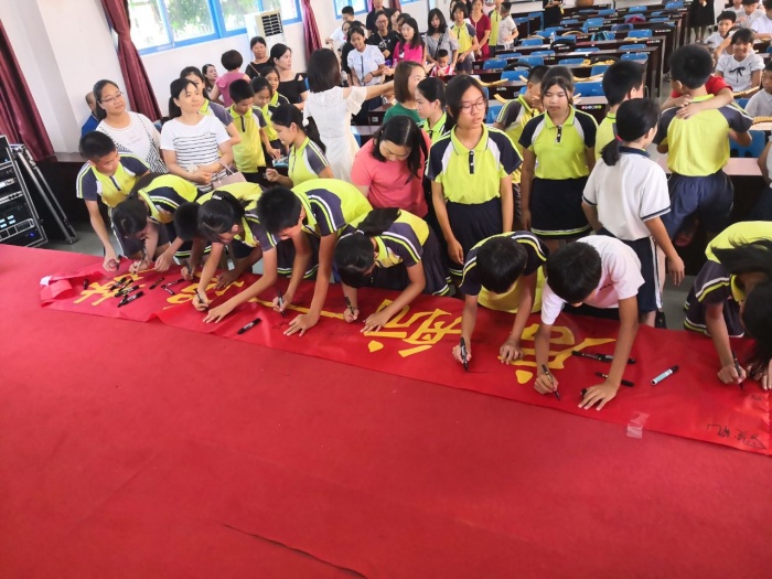 面对着优秀的他们,在场的学校领导、老师、家长,都为他们感到骄傲和自豪。他们的优秀离不开自身坚持不懈的努力,当然也离不开学校的栽培。为了感谢学校对学生们的悉心培育,两个毕业班的全体师生、家长为学校献上他们专门定制的纪念品,留给母校惠存。