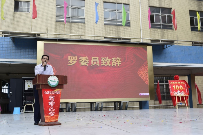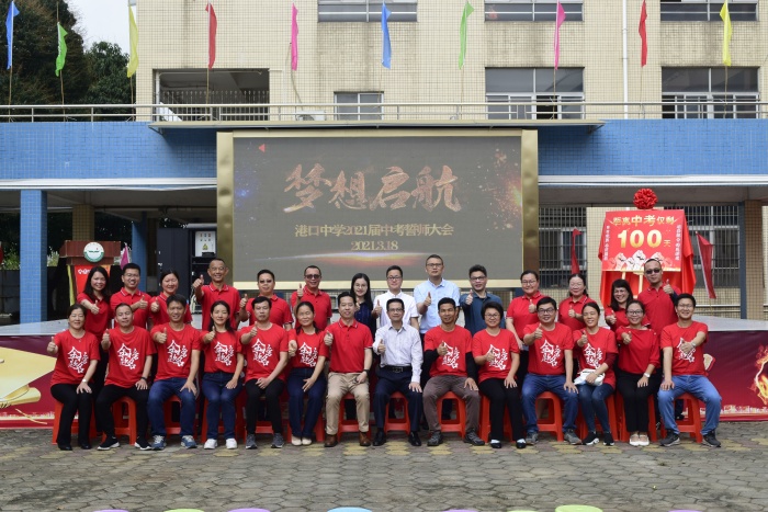 中考,是对学识、体力、心理素质的考验;是大浪淘沙、优胜劣汰的选拔;是更上一层楼,会当凌绝顶的高垒。今天,距离2021年中考仅剩一百天,为了强化学生们的拼搏意识,激发学生们刻苦学习的斗志,2021年3月18日,中山市港口中学隆重举行中考百日誓师大会。港口镇党委委员罗希京、港口镇教体文旅局局长冼伟明、副局长刘长路、副局长吴君嫦、港口镇教育体育事务中心主任刘宪军、副主任张育文以及港口中学全体行政参加了本次大会。