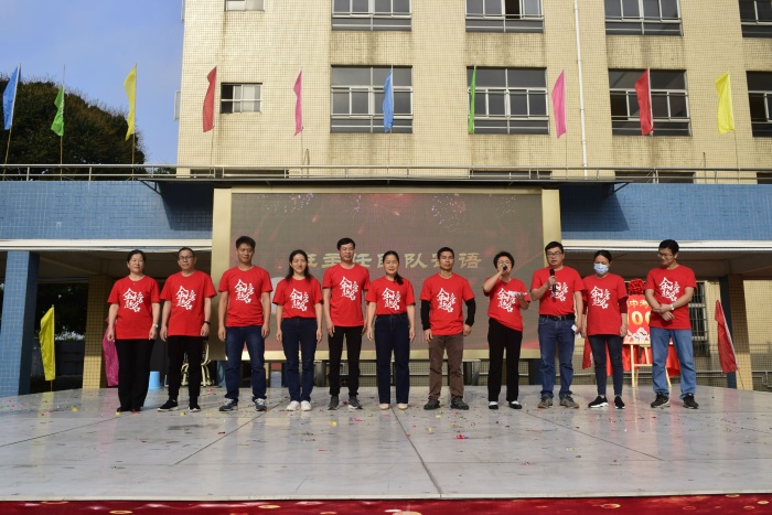接着,教师代表何中庆上台发表寄语,何老师希望同学们:要有‘结庐在人境,而无车马喧’的静心、专心,要有‘长风破浪会有时,直挂云帆济沧海’的雄心、信心。这也代表着全体初三教师对初三学生的殷切希望。随后,班主任团队上台给同学们加油、打气,往届优秀的学长、学姐、初三学生父母也录制了视频送上了他们的鼓励,为初三学生增添了中考必胜的信心。