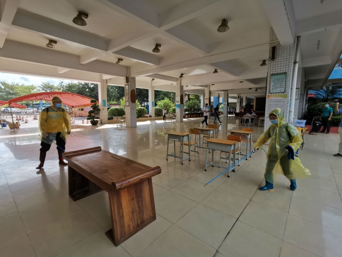 演练后,德育处副主任张建荣对全校师生进行疫情防控指导培训,特别强调做好校门入口关,宿舍把控关,严防感染性疾病进学校进班级,做好卫生清洁保洁与日常消毒,特别是勤洗手。注意课室打开门窗,时刻保持空气新鲜流通,及时倾倒课室垃圾,认真做好早、中、晚三次体温检测和登记,如有异常,立即向校医室报告。