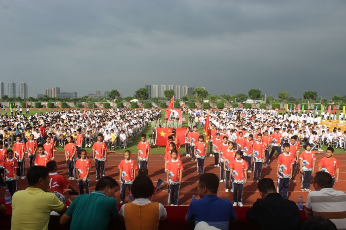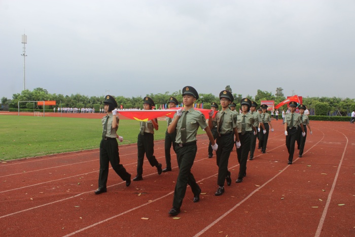 10月15日,秋高气爽,丹桂飘香,港口中学2020年体育节暨秋季田径运动会开幕式在运动场顺利举行。港口镇教体文旅局局长冼伟明、港口镇教育和体育事务中心主任刘宪军、港口镇教育和体育事务中心德育专干廖志坚、体育专干陈树洪,港口中学校长管德丰、副校长范泰昭以及各年级家委代表出席了开幕式,检阅了各班运动员入场方阵。