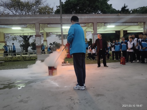 为了进一步加强学校消防安全工作,增强学校师生消防安全意识,提高自救防范能力,做到在发生火灾或其他突发情况时,能临危不乱、有序、迅速地按照消防逃生路线安全疏散,确保生命安全和学校的消防安全。3月10日下午,大南中学开展了住宿生消防应急疏散演练活动,演练由德育处副主任吴权明指挥。