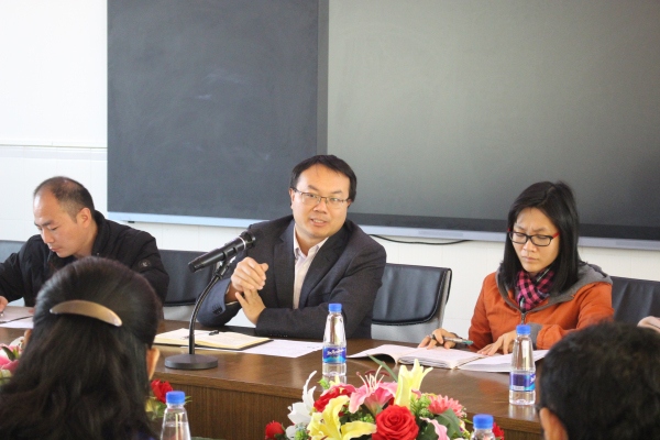 随后,所有参加活动的人员到四楼荣誉室进行座谈研讨。周阳名老师先阐述本节复习课的教学目标、重难点以及教学思路,并进行自我反思,提出疑问。郭跃辉老师从教学设计、教学过程、教学效果等多个环节进行了点评,对课堂教学各个环节的处理、教学理念的创新提出指导性意见和建议,他认为本节课教学目标具体、可操作,落到实处,运用合适的教学方法达到预期教学效果。同时,郭跃辉老师的教研团队对本节课的亮点与不足进行分析,并分享自己的期末备考教学经验。