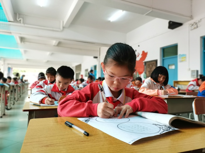 本次比赛是在各班选拔赛的基础上,由各班推荐表现突出的选手参加现场比赛。学校统一发放标准书写用纸,同学们在规定时间内完成选定书写内容。比赛中,孩子们握笔正确,坐姿端正,表现出了良好的书写习惯,所写作品笔画流畅,横平竖直,结构匀称,整体美观,每一笔都凝聚着对书法浓郁的热爱。舞动的笔端流淌的不仅仅是有形之字,更是无言之诗,无形之舞,无色之画,无声之乐。