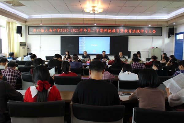 为进一步加强师德师风建设,切实规范学校教职员工从教行为。2021年3月26日,港口镇大南中学在荣誉室集中召开了师德教育暨教育法规学习大会,全体教师参会。