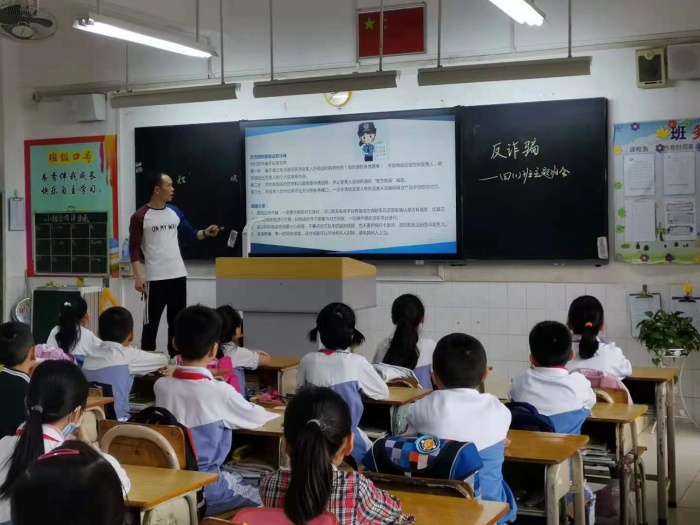 此次活动中,各班中队辅导员首先给同学们放映了一系列防诈骗的宣传片,视频中各种生动真实的案例让同学们对于诈骗的形式和常用手段有了充分的了解,提高了同学们对于诈骗防范的认识。视频观看结束后,各班中队辅导员通过相应的防诈骗安全课件总结并告诫同学们:“不管诈骗手段如何改变,一定要看清诈骗的本质!”提醒所有学生要提高防范意识,遇到电话或者网络诈骗采取不理会或者举报的方式,切莫因贪小便宜的心理而遭受损失。
