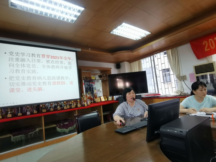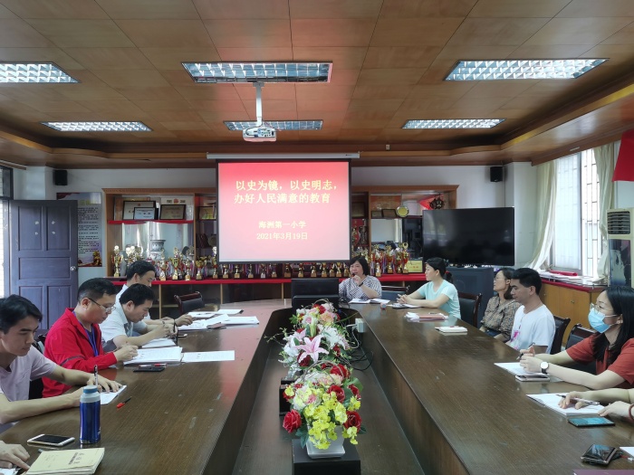 本次党史学习的主题是“以史为镜,以史明志,办好人民满意的教育”,活动由学校党支部副书记麦彩英同志主持。在党史学习活动前,麦校长对与会的老师们提出要求:全体老师必须严肃学习纪律,认真聆听,认真做好学习笔记,通过学习,提高觉悟,对党史的了解要有进一步的认识。