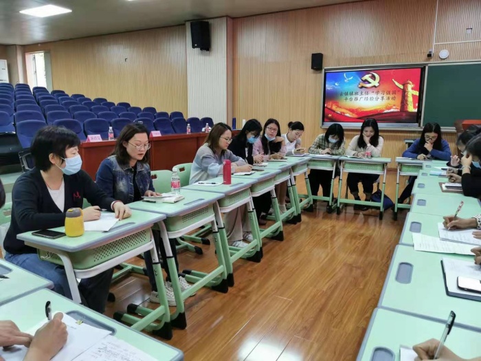 为交流班级管理心得,提高班级管理能力。本次活动还利用半个小时分年级交流班级管理困惑、庆祝建党100周年主题班会课研讨和“学习强国”平台推广经验分享。与会班主任对以上三个话题进行了面对面的交流,建言献策。