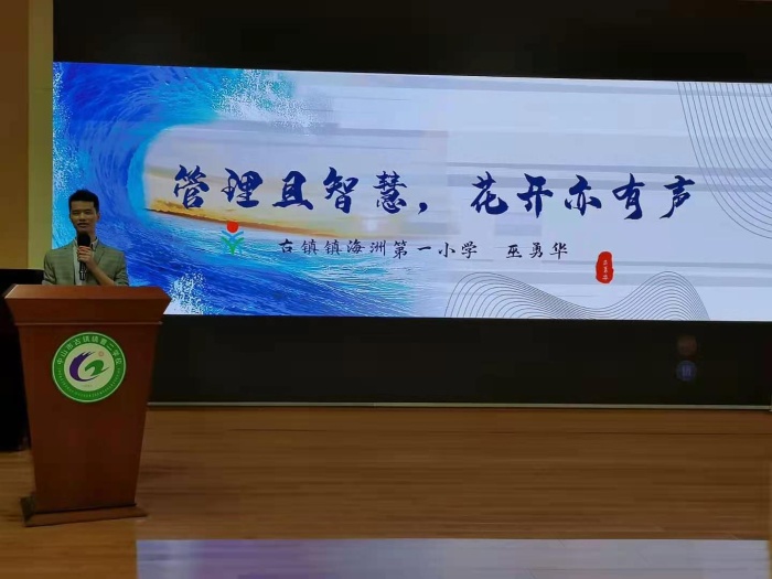本次活动第一个环节是外出学习经验分享。首先,曹二小学张铁英老师分享了《情绪情感策略在中小学德育工作中的运用实践》班主任工作实践专题汇报,张老师阐明了情绪管理在班级管理中起了重要的作用,基于阿瑟阿伦的情绪唤醒管理,要精心开展班级活动,使学生在活动让由情绪情感走向认知,班主任要高效利用主题班会活动进行班级管理。接着,海洲第一小学巫勇华老师作主题为《管理且智慧,花开亦有声》班级管理经验分享,他告诉大家,班主任管理要注意“软”和“硬,进行班委榜样化、班规民主化、班级分工化、奖励明晰化等“硬”方面达到文化引领成长、赏识助推发展、合作共筑友谊等“软”效果。两位老师满满的干货,在场的领导与老师都受益匪浅。
