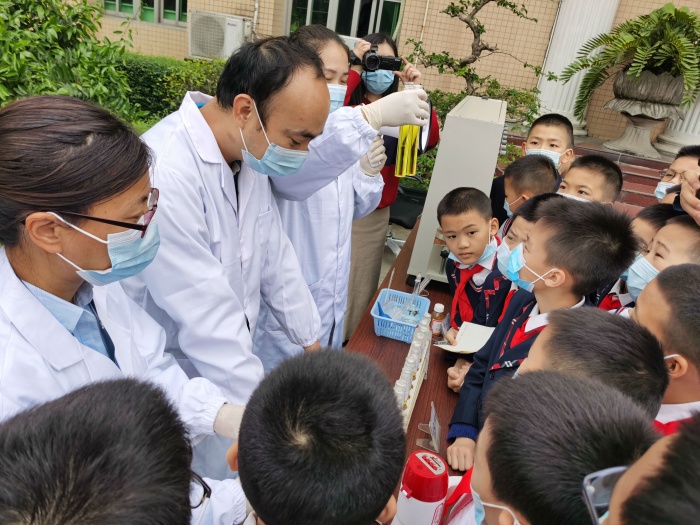 下午两点半,四年级学生已经排着整齐的队伍出发古镇供水厂。一来到水厂,各位工作人员对同学们的到来表示热烈欢迎。他们先对古镇供水厂作了简单介绍;接着,同学们在工作人员的带领下参观了供水厂的沉淀池、过滤池、清水池等不同地方;同时,水厂工作人员也详细地为同学们讲解了原水是怎样经过混合、反应絮凝、沉淀、过滤、消毒等环节,才变成星空体育家家户户所用的干净、健康的自来水。同学们都听得非常认真,还不时礼貌地请教工作人员各种关于自来水净化工艺流程的问题,并做好笔记。同学们还认真地观看了工作人员进行余氧检测的操作,了解了如何通过微生物实验以及滴定实验来测定水的洁净程度,深切体验了自来水生产过程的科学性与严谨性。