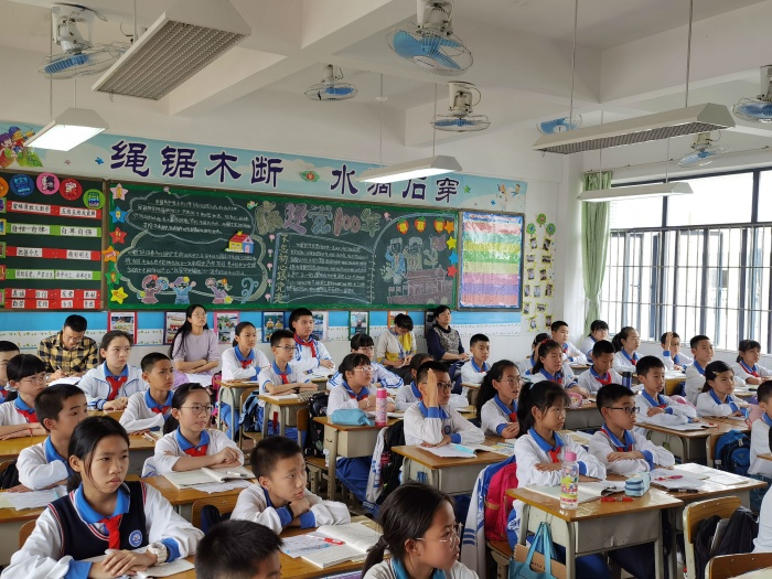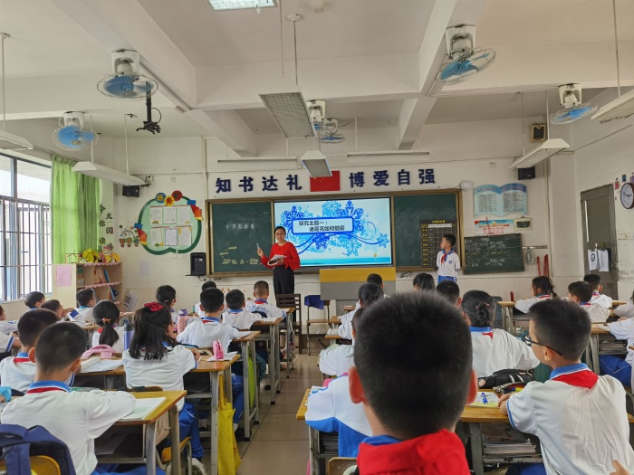 钟捷斌老师则展示了三年级古诗教学课例《清明》。钟老师从传统文化中的节日入手,引入“平长仄短、入促韵长”的吟诵规则,带领同学们感受吟诵之美。同学们对吟诵这种新的学习方式有着浓厚的兴趣,通过个人读、小组练、全班展示的方式逐步推进,深入学习。