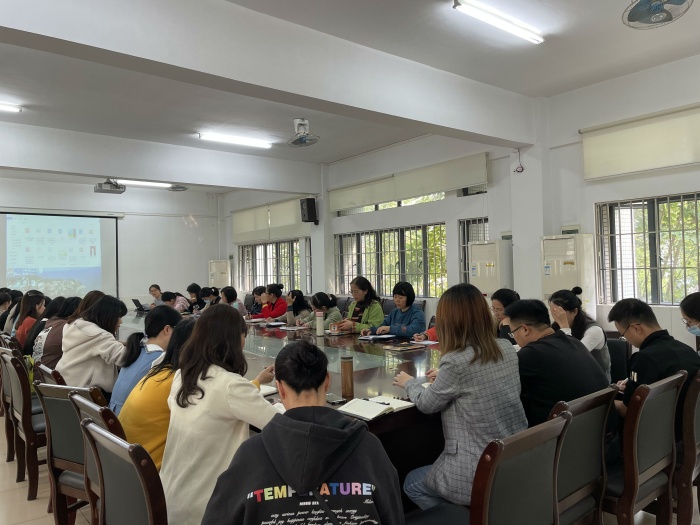 第三个环节是全体语文教师集中教研室进行集体交流活动。语文科组长郭淑玲老师提出教师要认真研读教材,在教研活动中积累经验,打造高效课堂。同时各备课组要根据年级知识点梳理出有针对性的学习专题,引导学生多积累诵读经典古诗文,鼓励学生养成阅读课外书的习惯。教导处刘晓岚副主任鼓励青年教师要注重自身的专业发展,提升自身的专业能力,为优化课堂教学做好准备。