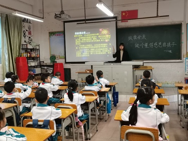 在庄严的升旗仪式上,叶晓虹老师用清脆响亮的声音告诉同学们,今天是第111个国际妇女节,在这个特别的日子里,祝全体女老师节日快乐,家庭幸福。之后,叶老师就告诉同学们要怎样关心自己的母亲,做一个懂事的孩子。课堂上,班主任们精心地为同学们上了一节题为:致敬母亲,做一个懂得感恩的孩子的主题班会活动。