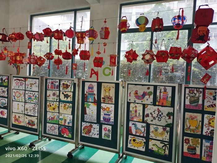 元宵节怎么能离得了灯笼呢。瞧!班级里挂着同学们亲手制作的灯笼,一盏盏富有创意,制作精巧,让同学们不由得驻足观看,整个校园洋溢着浓浓的节日气氛。